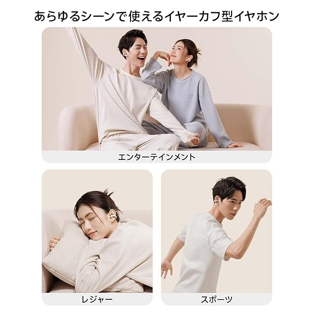 【デュアルデバイス接続&指向性サウンド伝送で音漏れを軽減】このイヤーカフイヤホンは自社開発のIDDCデュアルデバイスオーディオ接続技術を採用しており、2つのデバイス間をシームレスに接続できます。 ゲーム中でもいつでも別の電話からの電話に応答できるので、メッセージを見逃すことはありません。DT指向性音響伝送技術を採用、音の伝播角度が自動的に調整され、音が外耳道に正確に伝達され、音漏れが軽減されます。どこにいても外部環境に邪魔されずに音楽の世界に浸ることができます。