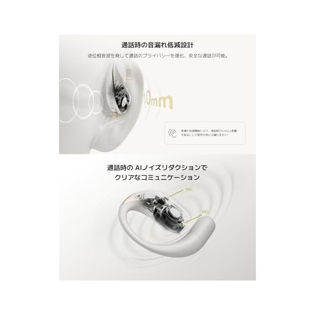 音漏れ低減設計で通話も安全:音漏れを低減するダイナミックドライバー構造に加え、独立した10mmの音漏れ低減ドライバーを搭載。逆位相音波を発して通話のプライバシーを強化し、安全な通話が可能になります、混雑している電車の中でも、ユーザーは安心して使用することができます。