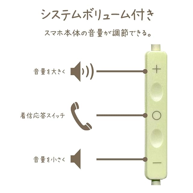 【ハンズフリー通話対応】着信応答ができるスイッチと、システムボリュームの調整ができるスイッチ付き。ハンズフリー通話が可能です。