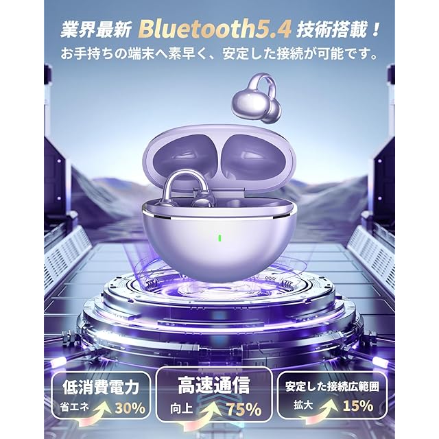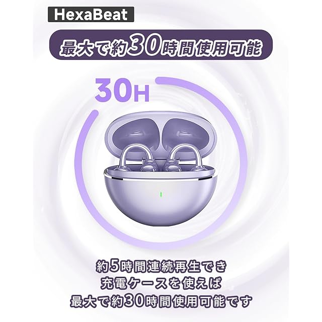 【ジュエリーのような魅力的なデザイン】 まるで美しいイヤリングのように輝く、紫色のイヤホン。どの角度から見ても可愛らしく、エレガントな輝きを放ちます。片耳わずか3.9gの超軽量設計で、長時間つけても負担になりません。ファッション感覚で耳元を飾り、音楽とスタイルを同時に楽しめるイヤホンです。