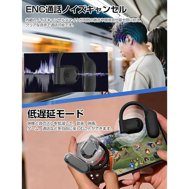 【技術進化のオープンイヤー型&✨革新Bluetooth5.3】革新技術を採用した耳を塞がない完全ワイヤレスイヤホン、屋外でも周囲の音に注意することができ、より安全になります。運動や家事、道路を散歩などに適しています。耳を塞がないため、外耳道を傷つけず、長時間装着しても痛くなりません。✨先端のBluetooth 5.3を搭載されたワイヤレスイヤホンの信号が強くなり、15m長めの伝送距離でiOS/Androidにも対応可能です。データ伝送速度が速くなったことにより、遅延も減らすことができます。