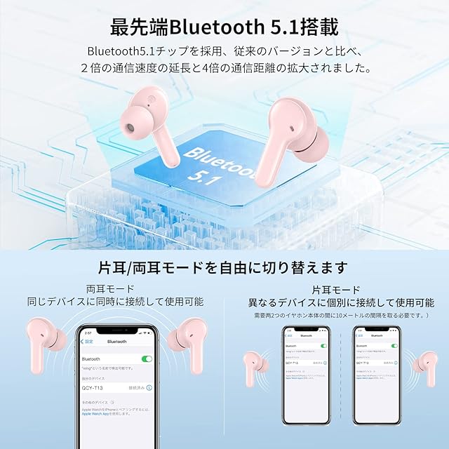 【HiFi高音質&4MIC&ENCノイズキャンセリング機能】QCY T13ワイヤレスイヤホンは7.2mmチタニウムドライバーとAACコーデックを採用し明際な高音域と透明度のある中音域、豊かな低音域、迫力のある3Dステレオサウンドを楽しめます。臨場感を感じさせ、お好きな音楽没入できます。革命的なNECノイズキャンセリング技術を採用し,イヤホン本体の外側と内側に四つのセンサーマイクを搭載し、外の会話や騒音を遮断できます。音楽信号を正確にデジタル化、オンライン授業、テレワーク、zoom、skypeなど会話に最適!効率的に会話を進められます。