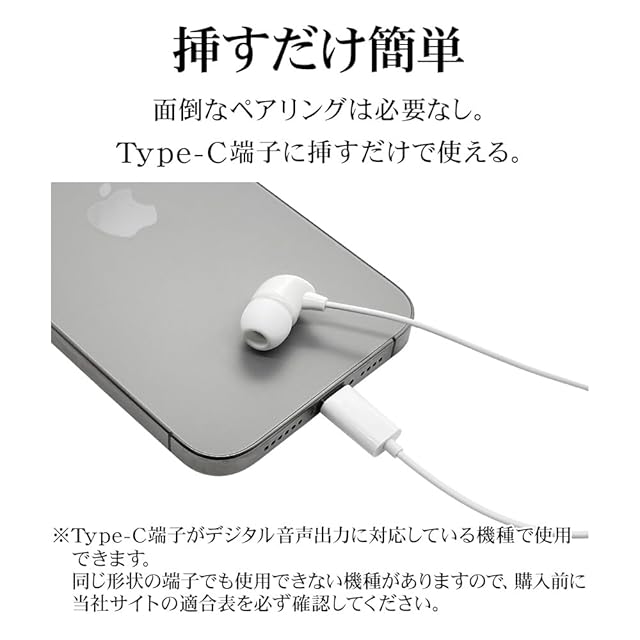【Type-C片耳用モノラルイヤホン】本製品はType-C端子用の片耳用モノラルイヤホンマイクです。音楽や動画の視聴を楽しむことができます。(※USB Type-C端子からのデジタル音声出力に対応していない機種では、本製品をご使用いただけません。)