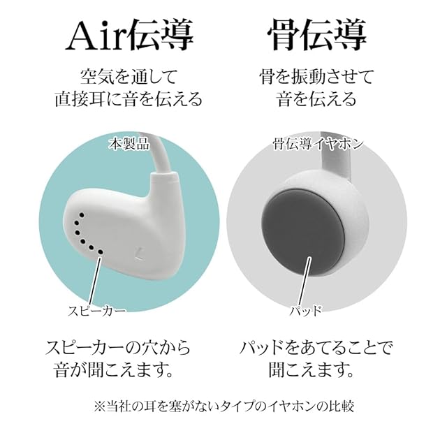 【オープンイヤーイヤホン】耳の穴を塞がない構造で、音楽を聴きながら周囲の音や声を聞くことができます。