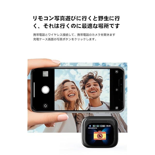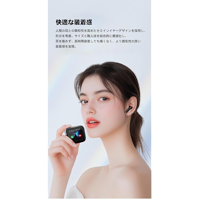 【LEDディスプレイ&軽量設計】一目でわかりやすいLEDディスプレイのデザインで、左右イヤホン bluetoothの充電状況が確認できるし、充電ケースの残量にも簡単に確認できます。フルカラーのスマートスクリーンは携帯電話を必要とせず、タッチするだけで操作できます。エレガントなインターフェースは見た目にも美しく、便利な操作であらゆる機能を簡単に探索して楽しむことができます。Bluetooth経由で携帯電話を接続し、携帯電話のカメラを開いて、充電ボックス画面の写真ボタンをクリックしてリモートで写真を撮影します。探索できる機能が他にもたくさんあります!手のひらサイズのイヤホン、充電ケースも40.8gと小型なので、小さくて軽くて、小さなカバンにもすっぽり収まるし、外出時にポケットに入れて、セットでどこに持ち歩いて邪魔にならず、快適に過ごせるコンパクトなデザインです。