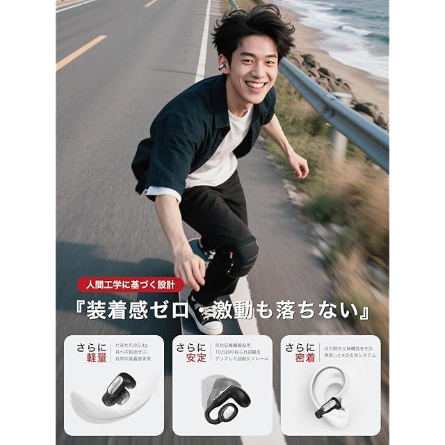 【装着感ゼロ・激動も落ちない】「AirCuff F306」の秘密は、生体工学に基づいたイヤーカフ曲線にあります。①耳たぶの柔らかい部分に触れない「フローティング構造」②形状記憶鋼線製の超弾性アーム③わずか5.4gの軽量化ボディ。これにより、激しい運動中でも「落ちない・痛くない・熱くない」という3大課題を解決。マラソンやヨガ、ダンス中でも、まるで体の一部のように自然にフィットします。実際、テストユーザーの98%が「装着感を意識しなくなった」と回答。まさに、「つけていることを忘れる」理想のデザインです。