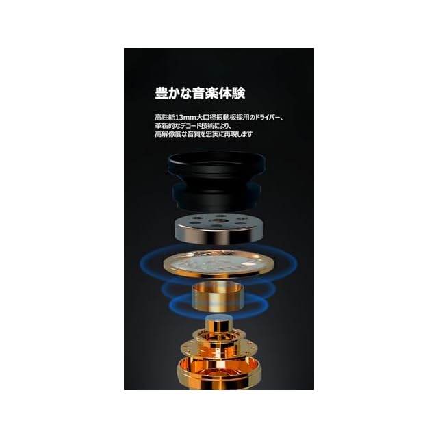【高音質ドライバー&ノイズキャンセリング】 13mmの大口径ドライバーユニットを搭載し、高周波数帯域の音声情報、左右のチャンネルの差分情報を効率的に伝送できることで、サウンド本来の質感を復元し、低音域から高音域に至るまで原音に近い自然かつパワフルな音体感を与えられます。高性能マイクとノイズキャンセリングが搭載され、周りの騒音をカットし、自分の発話だけに焦点を当て通話相手にはっきりと伝わるため、通話品質が優れています。