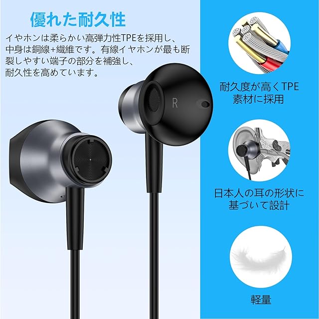 【優れた耐久性】:有線イヤホンならではの音質は、物理的な銅線で音楽データと伝送を処理し、歪みがほとんどありません。高いノイズアイソレーションとノイズキャンセリングの向上により、高音質と快適な装着感を実現しています。ハイレゾ音源に対応したチップがダイナミックな音質を実現し、音楽を存分に楽しめます。