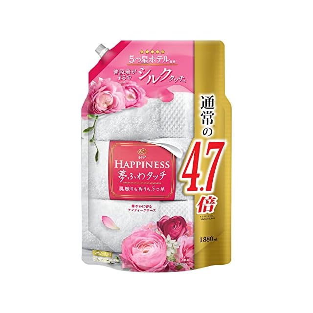 5つ星ホテル推奨!レノアハピネス夢ふわタッチで香りも肌ざわりも5つ星。大改良したレノアハピネス夢ふわタッチでおうちにいながら5つ星ホテルのような夢ふわ体験を。