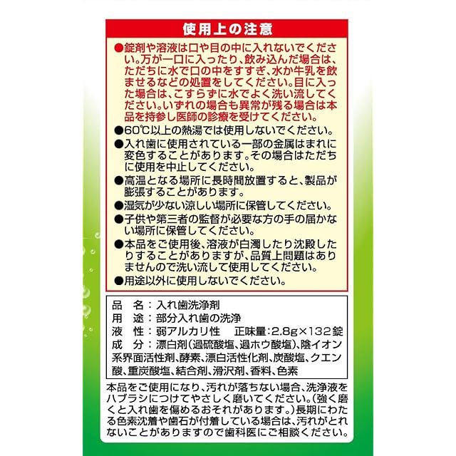 酵素入り入れ歯洗浄剤 部分入れ歯用 132錠入
