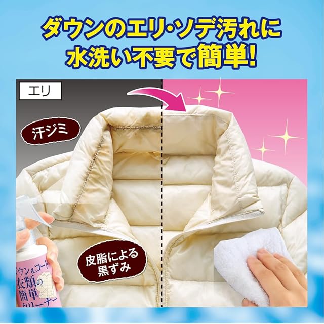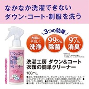洗濯工房 ダウン&コート衣類の簡単クリーナー 180mL 日本製 ダウン コート 制服 汚れ におい ニオイ 汗 汗ジミ 皮脂 黒ずみ エリ ソデ 襟 袖 スプレー 拭き取り 水洗い 不要 簡単 洗濯 洗浄 除菌 消臭 衛生 株式会社エルベ・プランズ