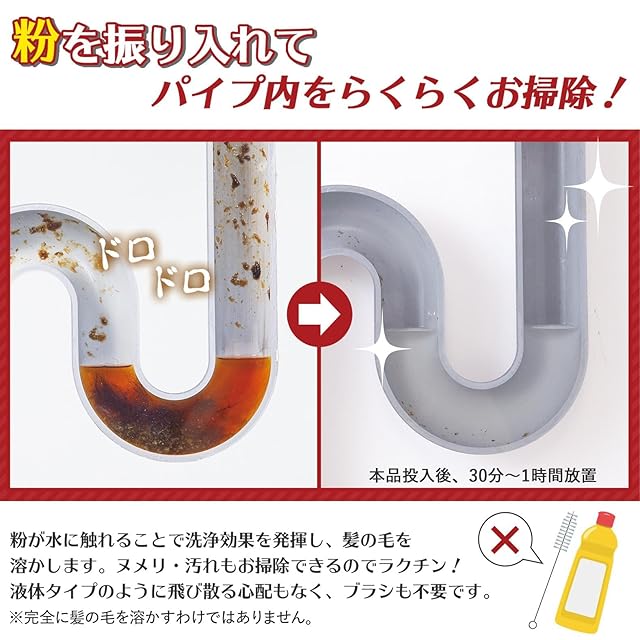 粉を振り入れ1時間放置するだけのらくらくお掃除!
