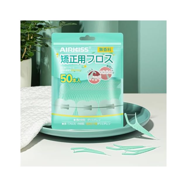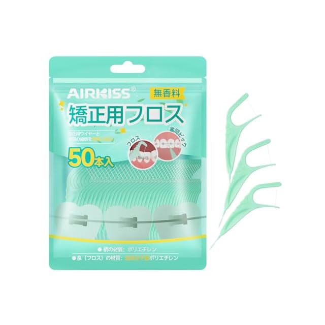 Airkiss(エアーキス)矯正用デンタルフロス 50本入り ワイヤーの際間に入り込む 歯間クリーナー