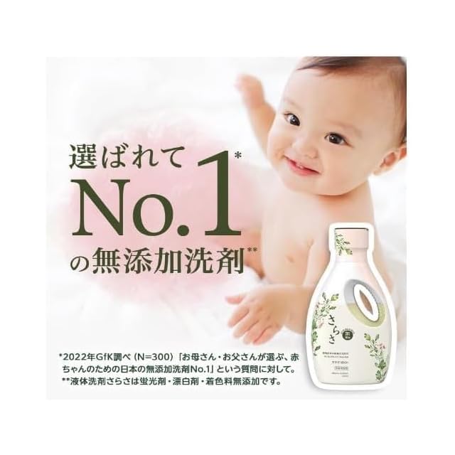 ママが選ぶ無添加洗剤銘柄No. 1* (*2016年GfK調べ(N=303)「お母さんが選ぶ、赤ちゃんのための日本の無添加洗剤No.1」という質問に対して) すすぎ1回OK、洗剤残りの心配なし。優しい柑橘系の香り 洗濯洗剤さらさは、無添加* さらさ史上最高洗浄力(蛍光剤、漂白剤、着色料無添加) 皮膚科医監修のもと、肌テスト済み*。肌に優しい。(*全ての人の肌に影響がないわけではありません) 天然酵素を配合。汚れを落として、本来の白さへ。(*汚れ落ち洗浄試験で評価)
