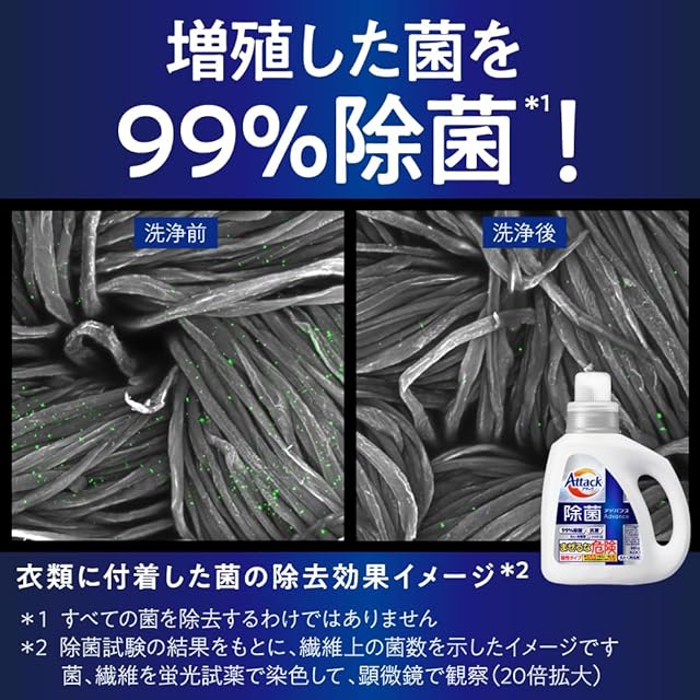 アタック除菌アドバンス 洗濯洗剤 液体 99%除菌。増殖した菌を徹底洗浄へ! 本体 880g