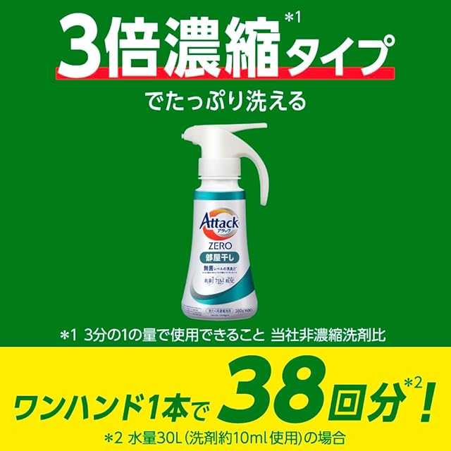 アタック 【まとめ買い】ZERO 液体史上 最高の清潔力。無菌レベルの消臭力 部屋干し ワンハンドタイプ 本体380g+詰替え760g