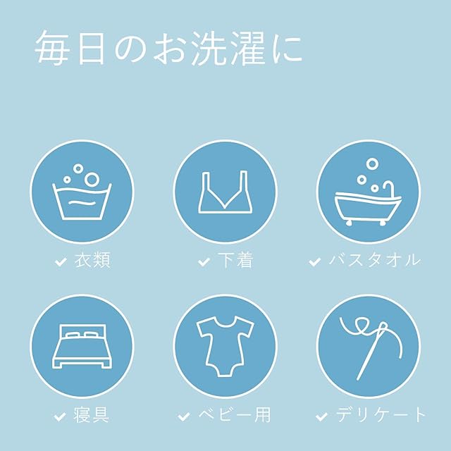 使い古したタオルも、ふんわりと柔らかく肌に優しく仕上がるので肌の乾燥が気になる季節のお洗濯にプラスすると、お風呂上がりが楽しみになるかも。シリコン・コーティング剤フリーなので、柔軟剤にありがちな吸水性も失いにくく、お気に入りのタオルもずっと心地よく使えます。