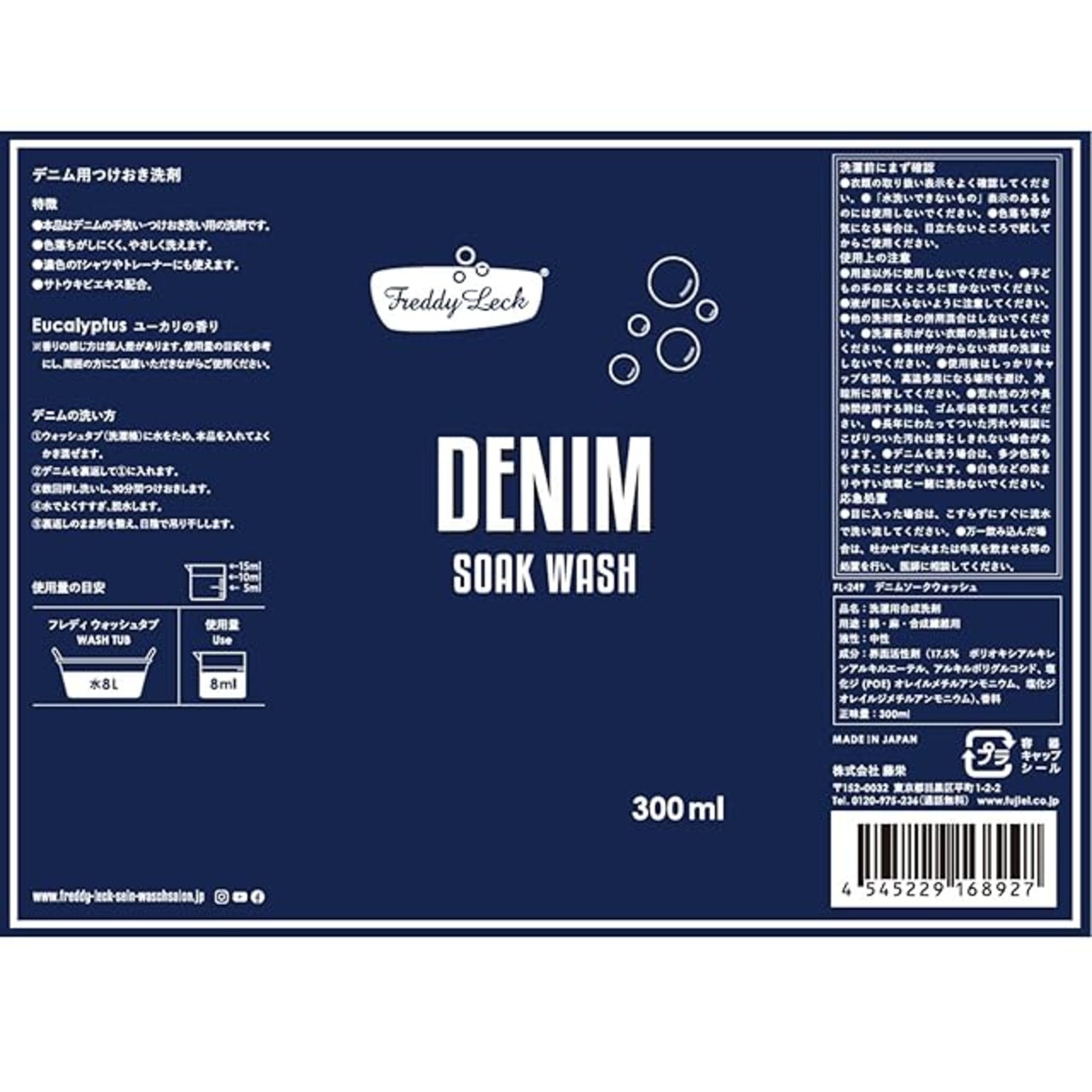 フレディレック(Freddy Leck) デニムソークウォッシュ 300ml ユーカリの香り | デニム専用 洗濯洗剤 衣類洗剤 液体洗剤 デニムケア ジーンズ ジャケット 濃色衣類 つけおき 手洗い 色移り 色落ち防止 中性 日本製 FL-249