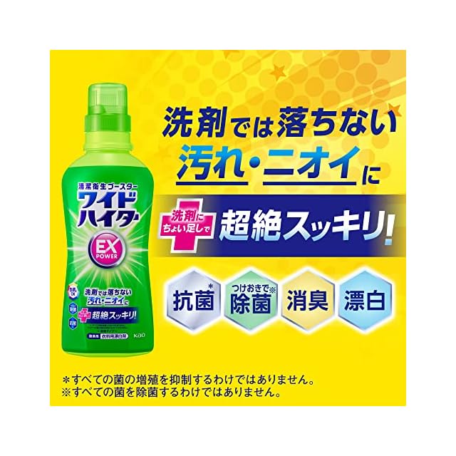 ワイドハイターEXパワー 衣料用漂白剤 見過ごせなくなった汚れやニオイ 、洗剤にちょい足しで超絶スッキリ!! 大本体930ml