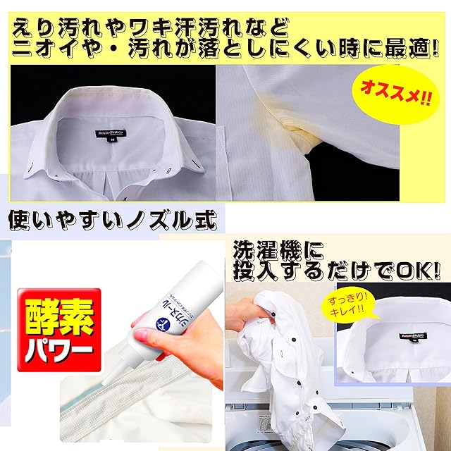 原材料: 界面活性剤(51%、高級アルコール系(非イオン))、溶剤、アルカリ剤、安定化剤、酵素