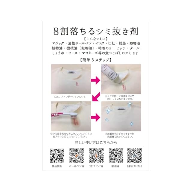クリーニング店でも人気の業務用シミ抜き剤 リモネン配合で一般家庭の約8割シミに対応