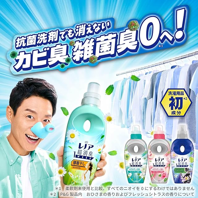新しくなったレノア超消臭1WEEKは、カビ臭・雑菌臭0へ(*1)。湿気から衣類を守る *1 柔軟剤未使用と比較。すべてのニオイを0にするわけではありません。