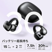 UGREEN Bluetoothイヤホン 耳挟み式 bluetooth5.4 ワイヤレスイヤホン オープンイヤー型 空気伝導 ENCノイズキャンセリング 12mmダイナミックドライバー 高速充電で30時間再生 98%ノイズ漏れ低減 耳を塞がない 超快適 5.3g超軽量 人間工学設計 IPX5防水 自動ペアリング iPhone Android スマホ対応(黒)