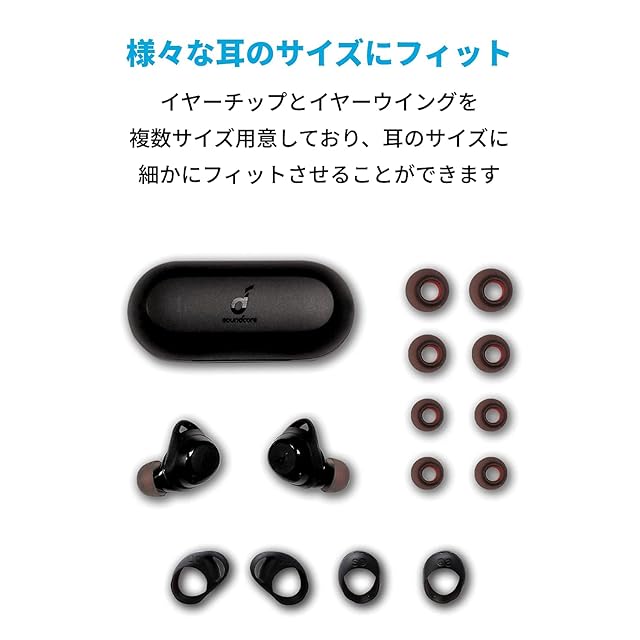 Soundcore | Hear It. Feel It.<br> 心地良く、等身大に音楽を楽しみたいあなたへ贈る、Ankerのオーディオブランド<br><br>製品の仕様<br> 再生可能時間:最⼤10時間(イヤホン本体のみ) / 最⼤40時間(充電ケース使⽤時)<br> 重さ:約6g (イヤホン片方)、約59g (充電ケース込み)<br> 防水規格:IPX7<br> Bluetooth規格:5.2<br>Bluetoothプロファイル:AVRCP、A2DP、HFP<br>対応コーデック:SBC / AAC<br>充電時間:約2時間<br><br>アプリで手軽なカスタマイズ<br> Soundcoreアプリを使用することで、イコライザー設定やイヤホンのタッチ操作を簡単にカスタマイズすることができます<br><br>ワイヤレス充電対応<br> Soundcore Liberty Neo 2はワイヤレス充電対応のため、ワイヤレス充電器に置くだけでケースごと充電ができます。(ワイヤレス充電器は別売)<br><br>最大40時間の再生可能時間<br>イヤホン本体が満充電の状態で、最大10時間の音楽再生が可能です。また付属の充電ケースを合わせて使えば、最大40時間分の連続再生が可能です(※再生可能時間は、音量、再生する内容、使用環境によって異なります)。 <br><br>片耳でもお楽しみいただけます<br> 左右のイヤホンの単独使用と両耳での使用を簡単に切り替えることができます。 ※片耳使用時は、もう片方のイヤホンを充電ケースに戻し、ケースの蓋を閉じてください。<br><br>全てをタッチ操作で<br>運動中でも操作がしやすい物理ボタンを採用。ワイヤレスイヤホンのボタンを操作するだけで、着信への応答や音楽の再生、停止、曲送りが可能です。 <br><br>様々な耳のサイズにフィット<br>イヤーチップとイヤーウイングを複数サイズ用意しており、ご自身の耳のサイズに細かにフィットさせることができます。また、ご自身に合った密閉感の高いイヤーチップのサイズを選択することで、最適な音質とフィット感を得ることができます。 ※左右の耳穴の大きさは異なる場合があります。右耳はLサイズ、左耳はMサイズなど異なるサイズの組み合わせもお試しください。