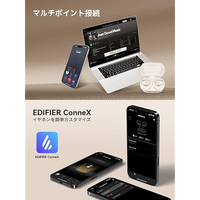 【クリアな音声通話・高音質・LDAC/AAC/SBC対応】Edifier A6 オープンイヤーイヤホンはAIノイズキャンセリング技術を搭載した2+2の内蔵マイクにより、通話がクリアに。14.2mm大口径のドライバ-を採用しており、全ての音域を、緻密に再現。ハイレソ再生、高音質コ-デックLDAにも対応。音に指向性を持たせることで音漏れを抑えながら、深く迫力のある重低音を実現します。
