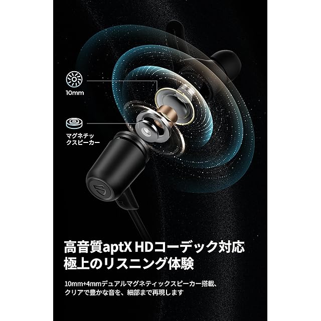 【atpX HD/AACコーデック対応、CDを超える音質体験、チップも新たに】:atpX HD、AAC、SBCコーデックに対応しており、CDを超える音質を再生できます。チップも新たにQCC3046にアップグレートされ、Bluetooth5.2対応で、より優れたデータ伝送速度、伝送品質、解像度を実現。【10mm+4mmデュアルマグネットドライバー搭載、原音に近いサウンド再現】10mm+4mmのデュアルマグネットドライバーユニットを搭載することにより、クリアな高音から厚みのある低音までバランスよく再現でき、原音に近いサウンドで素晴らしい音楽体験を提供します