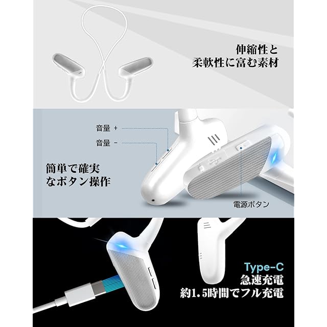 より安定した接続・忠実な音再現:最新のBluetooth 5.3チップを搭載しており、より安定した接続と低遅延モードを提供します。電源を入れるとすぐにペアリングモードに入るため、Bluetooth接続をすぐに行うことができます。初心者でも簡単に使用でき、快適なユーザーエクスペリエンスを提供します。指定の方向に音を伝える空気伝導技術を採用しており、ビッグサイズの振動膜を組み合わせることで、ミニスピーカーが耳の鼓膜をダイレクトに刺激してくれるので、耳穴に入れるタイプと変わらない仕組みを実現!音質へのこだわりも素晴らしいイヤホンです!