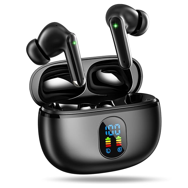 イヤホン bluetooth ワイヤレスイヤホン 【2024業界新開発 最先端Bluetooth5.4】 ブルートゥース イヤホン LEDディスプレイ残量表示 ENCノイズキャンセリング+DNS技術 自動ペアリング 完全ぶるーとぅーす イヤフォン 最大60時間連続再生 タッチ操作 Type-C充電 IPX7防水 片耳/両耳 小型/軽量 iPhone/Android適用 (ブラック)