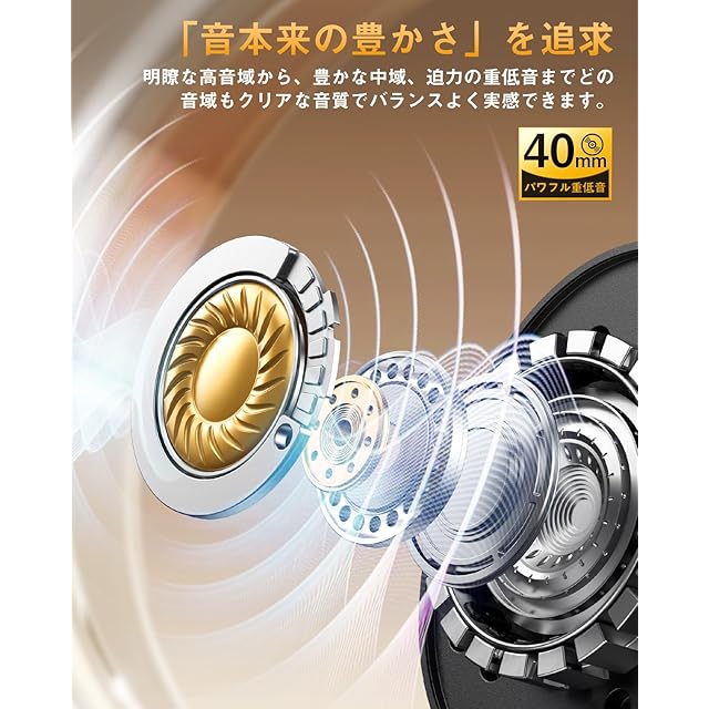 【ANCノイズキャンセリング・HIFI高音质】高性能なノイズキャンセリング機能を搭載します!駅や街中のように外音が気になる環境でも、没入感のあるサウンドを楽しめます。室内はもちろん、カフェや電車内など場所を気にせず音楽を楽しめます。※ノイズキャンセリングをオフにした後、電源ボタンを2 ~ 3秒長押しすると、電源がオフになります。軽量なボディながらも、重厚な低音を鳴らしてくれるワイヤレスヘッドホン。「40mm径ドライバー」を搭載し、重低音とメリハリのある中高域を実現しています。クリアな音を再生できるため、音楽に集中しやすいのが大きな魅力。初心者もおすすめです。