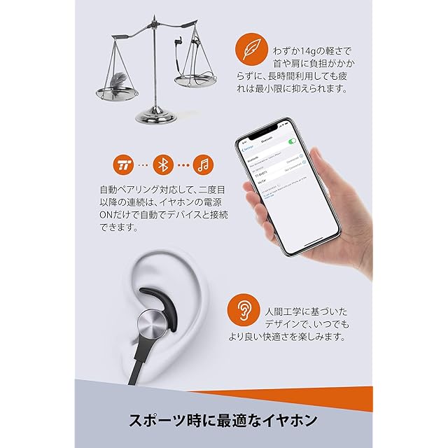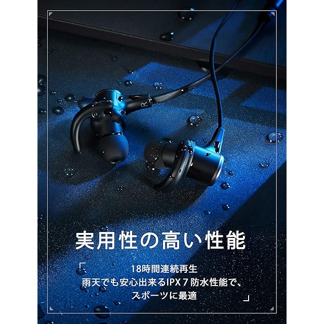 【IPX7防水規格】当モデルは従来のIPX6からIPX7へ改良されたました。雨や汗からイヤホンを保護するナノコーティングにより、悪天候のランニングや汗をかくスポーツトレーニングでも遠慮なく使用できます。左右イヤホンにマグネットを搭載し、近づけたら、左右のイヤホンがすぐに密着し、使用しない場合には手首、首にかけられて便利です。通勤、通学、スポーツ、登山等の際にも安心してご使用いただけます。