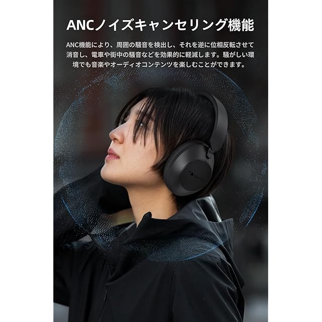 ANCノイズキャンセリング・ナカミチ サウンド:ANCノイズキャンセリング機能を備えたヘッドホンは、騒がしい場所や移動中の車内などでも、静かな音楽やクリアな通話を楽しむことができます。電源が入れない状態でもANC機能をオンにして使用できます。また、40mmの大口径ドライバーユニックを採用し、迫力のある低音とクリアなサウンドを再生できます。好きな音楽を快適に没入できます。さらに、マイクが内蔵され、クリアな音声でハンズフリー通話が楽しめます。
