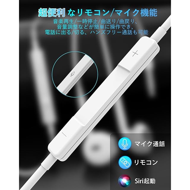 プロ級高音質体験を与えるiPhone 有線イヤホン 誰でもプロ級の音質を体験できるようと目指してこのiphone イヤフォンを開発しました。 イヤホン 有線 ノイズキャンセリングを着けて聴覚に新しいサウンドを浴びて音楽の旅に出ましょう♪ 有線イヤホン 高音質で自然でスムーズな音の伝達を実現!ハンズフリー通話も対応でき、クリアな通話を実現できるノイキャンイヤホンです。 ハイレゾ イヤホン 有線で音楽で彩る素敵な1日を過ごせる! マイク付きイヤホン iphoneは小型リモコンを搭載し、楽曲の再生・停止/曲送り・曲戻し/早送り・早戻し/音量UP・音量DOWN/着信時の受話・終話といった操作が可能。 アイフォン イヤホン 有線は人間工学に基づき耳にフィットするように設計され快適な装着感を実現! iphone イヤホン 純正は高品質で柔らかなTPE素材使用しており、15,000回もの折り曲げテストにも合格し、一般的なiphone イヤホン 有線より10倍以上高い耐久性を実現しました。 有線イヤホンならぜひ天候や場所を気にせず音楽を楽しめられるこのライトニング イヤホンにしましょう! 「MFi認証」を取得したlightning イヤホンのため、ライトニング端子が搭載されているiPhone、iPad、iPodで使用できます。 有線イヤホンなので音の遅延がない、ネット動画や映画、通話なども快適に楽しめます。