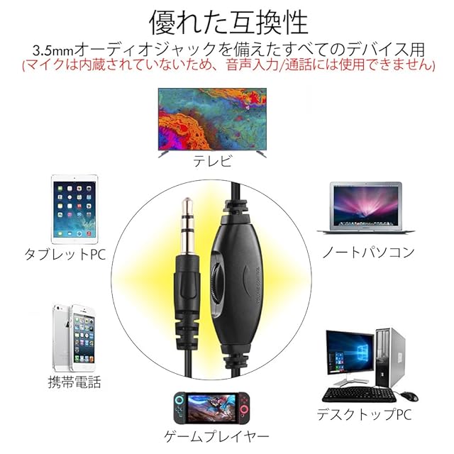 [テレビとユニバーサルデバイス対応] このヘッドフォンを使用すれば、テレビの音だけを楽しむことができ、家族や近隣への騒音も防止します。テレビだけでなく、3.5mm / 1/8インチオーディオポートを備えたラップトップ、PC、CDプレーヤー、MP3プレーヤー、スマートフォンなど幅広いデバイスにも対応しています。