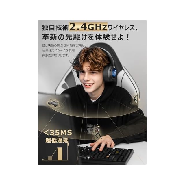【ゲーム専用の独自開発2.4GHzワイヤレス技術】他のヘッドホンと比較して、当社は独自に開発した2.4Gワイヤレス接続モードを追加しました。