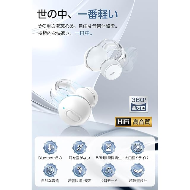 【世界最軽量クラス・紙より軽い3.8g】音楽を身近にする革新、世界最軽量クラスの イヤホン blutooth をご紹介します。わずか3.8gの超軽量設計で、A4用紙一枚よりも軽く、空気のように軽く耳に優しくフィットする ワイヤレスイヤホン となり、無重力のような装着感で、長時間の使用でも快適さを保ち、音楽をもっと身近に感じられる新しい自由を耳に提供する iphone イヤホン となります。