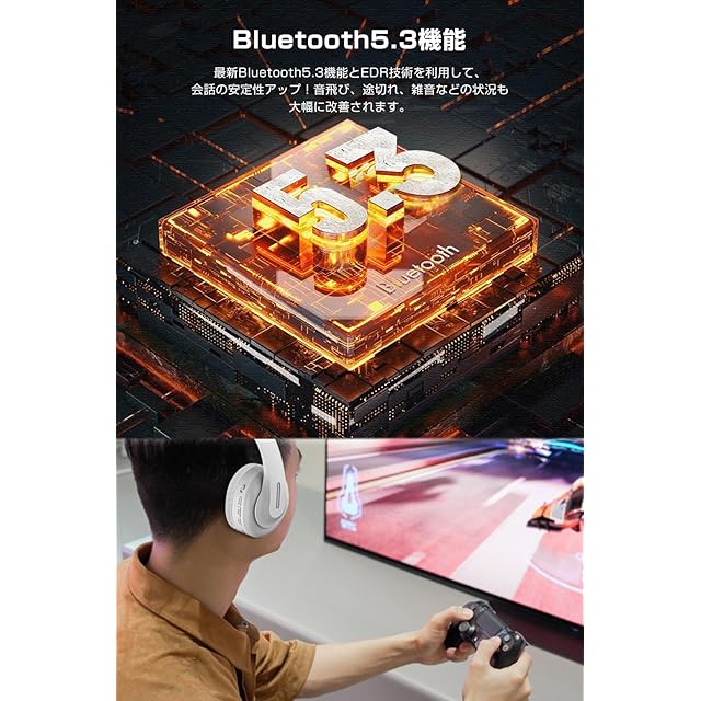 【次世代Bluetooth 5.3・よりスムーズなワイヤレス体験】Bluetooth 5.3を搭載し、より安定した接続とスピーディーなデータ転送を実現。動画視聴時の遅延を最小限に抑え、通話時もクリアな音声を届けます。さらに、電波干渉に強く、混雑した環境でもスムーズな接続を維持。通信距離も広く、デバイスから少し離れても快適に使用できます。