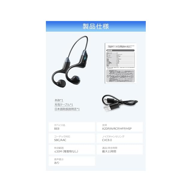 イヤホンは骨伝導技術を採用しています。音波が直接骨組織を通じて内耳に伝わります。