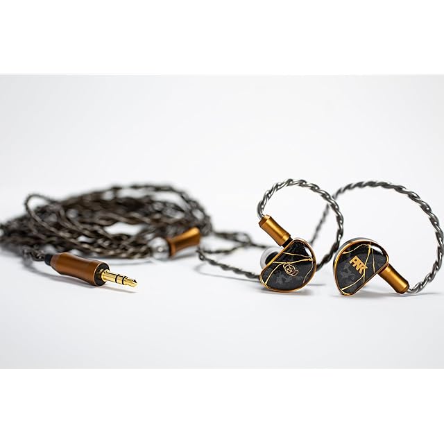 【高級感のあるパッケージと本体】黒ベースのフェイスプレートに、日本の伝統技法である『金継ぎ』を想起させるデザインを施し、美しさを際立たせる仕上がりになっています。また、有線ピヤホン3に続き貼箱を採用しており、デザイン箔を用いた中央のPNKロゴは角度や光により表情を変える高級感に仕上がっています。