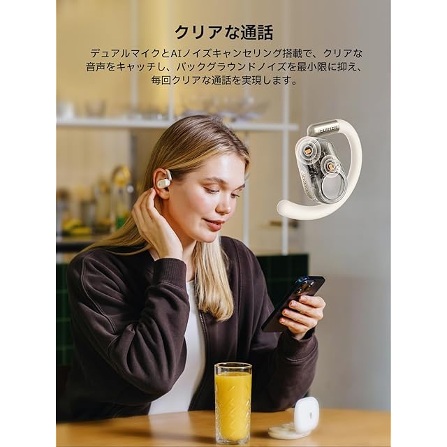 【耳を塞がないデザイン・安全性】耳を塞がないオープンイヤー 設計を採用しており、周囲の音を自然に聞きながら音楽や通話を楽しむことができます。通勤通学も、仕事中も、ワークアウトの時も、周囲に存在する可能性のある危険な音を鋭敏に捉え、安全を確保することができます。