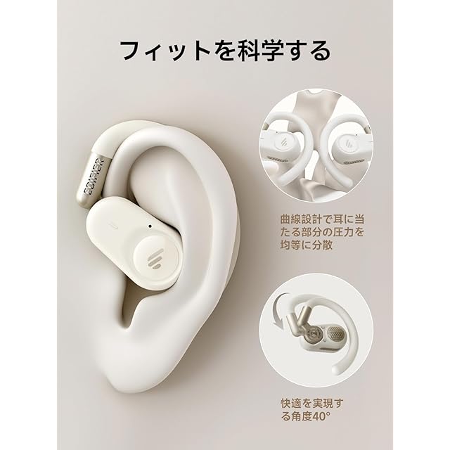 Edifier A6 オープンイヤーイヤホン 完全ワイヤレスイヤホン 究極のフィット感 bluetooth 5.4 ハイレゾ対応 耳を塞がない ENC通話ノイズキャンセル マイク付き IP55防塵防水/最大40時間再生/急速充電/AAC/SBC/LDAC完全対応/マルチポイント接続/音漏れ防止 9.1g軽量 スポーツイヤホン オープンイヤー 2025年新登場