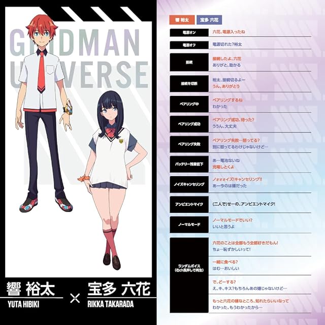 累計出荷台数約13万台*のAVIOTのヒットモデル”Vシリーズ”の最新機種をベースモデルに採用。『グリッドマンユニバース』の魅力を堪能できる特別仕様の完全ワイヤレスイヤホンの第2弾です。 充電ケースとイヤホン本体は、ローグカイゼルグリッドマンをイメージした配色に。 特徴的なグラデーションを特殊加工で再現し、煌びやかでありながら重厚感を感じさせる仕様です。 サウンドチューニングは、グリッドマンシリーズを象徴する数々の楽曲を手掛けた、オーイシマサヨシ氏と内田真礼氏が担当。2つのチューニングはアプリで切り替え可能です。 電源ON/OFFなどをお知らせするボイスガイダンスに加え、劇中の名セリフを再現したスペシャルボイスを完全新録で320種類以上搭載。セリフ選定には、響裕太役の広瀬裕也氏、ガウマ/レックス役の濱野大輝氏も参加。第一弾から大幅ボリュームアップの計9キャラクターと、4モードの“掛け合いモード”をお楽しみ頂けます。