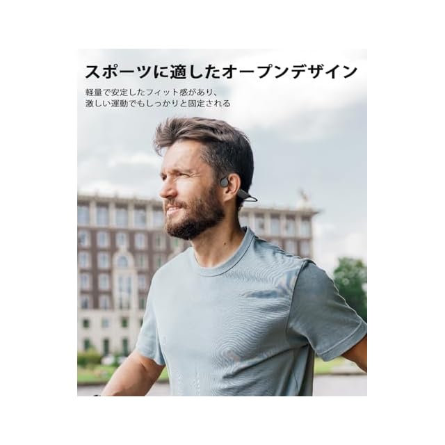 オープン型ヘッドホン しっかりとしたデザイン - 日常の運動でもしっかりと体にフィットします。耳を塞ぐ必要がないので、音楽を楽しむと同時に周囲の音も聞こえます。