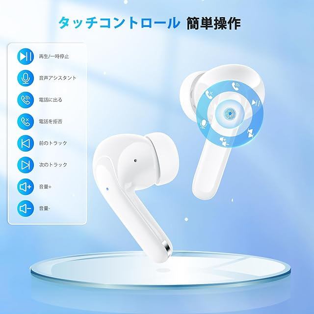 【2025人気デザイン金賞】SONRU ワイヤレスイヤホンBluetooth 5.3, ブルートゥース イヤホンHi-Fi音質 40 H再生 瞬間接続 ブルートゥース ENCノイズキャンセリング 左右分離型LED電源表示USB-C充電 IPX 7防水BluetoothイヤホンノートパソコンAndroid/iOS携帯電話 ビジネス/WEB会議/通勤/通学/スポーツ(白)