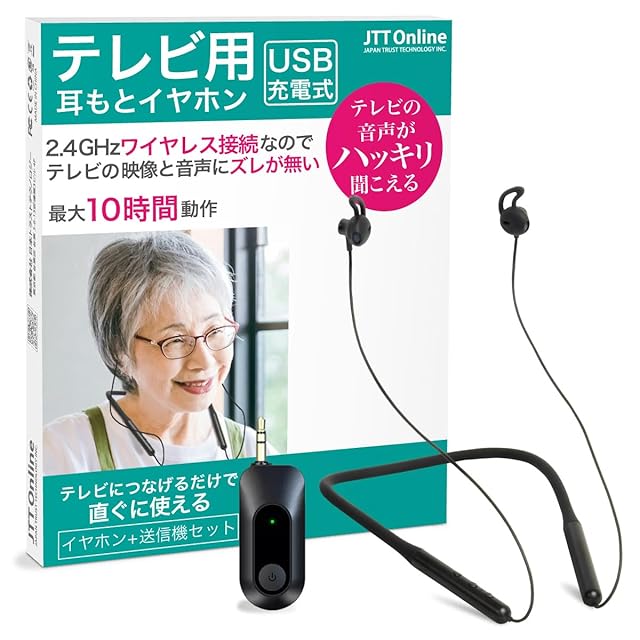 JTT Online ワイヤレス テレビ用 イヤホン TVサポート OTOMO 音友 -公式- USB充電 手元 スピーカー テレビスピーカー 無線 2.4GHz 高齢者向け 集音 ネックバンド オーディオ送信機 音ずれ 遅延無し 10時間 長時間動作 WTSEOB