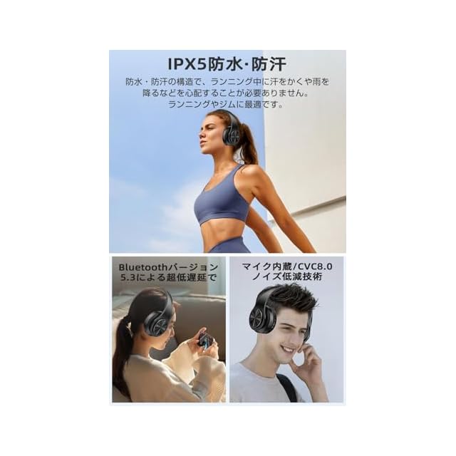 【IPX5 防水/1 年保証】IPX5 防水・防汗の性能で、ランニングやスポーツに安心して楽しむこ とができます(ご注意:本製品は完全防水ではありません。完全に水に浸すと故障になる可能性があります)。 セッ ト内容:Bluetooth ヘッドセット本体、充電ケーブル、3.5mm オーディオケーブル、取扱説明書。お 客様に安心して使用するために、購入日から 1 年間まで保証サービスを提供します。
