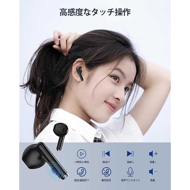 自動ペアリングとスマートタッチコントロール:ワイヤレスイヤホンをマグネット充電ケースから取り出すだけで、Bluetoothイヤホンが自動的にオンになり、お使いのデバイスに接続されます。スマートタッチコントロールを採用した設計により、タッチ操作がストレスなく行え、簡単なタッチコントロールでで曲送り/曲戻し、音楽再生/停止、電話応答/終了/拒否、電源オン/オフ、音量調整、など基本的な操作が実現です。